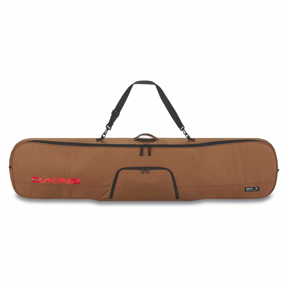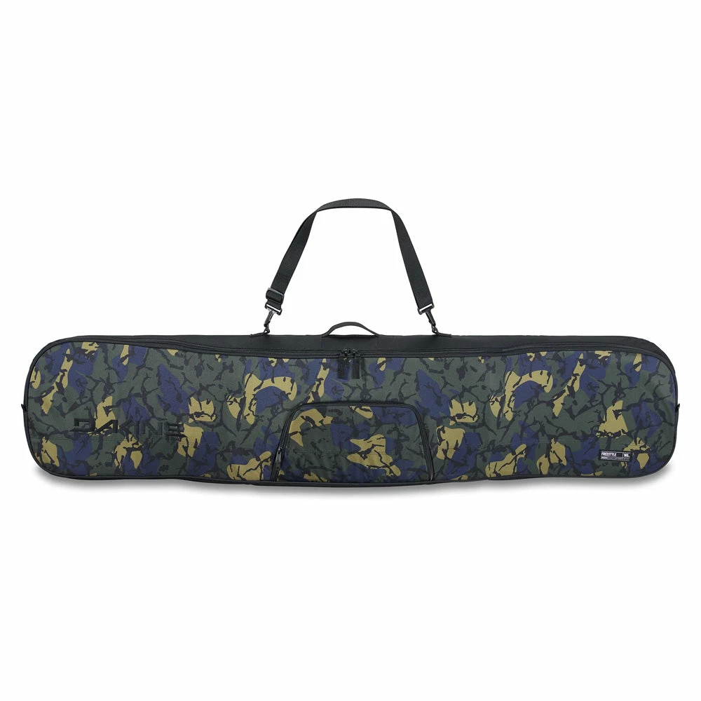 DAKINE FREESTYLE SNOWBOARD BAG A well-designed and practical snowboard bag, the Freestyle is padded to protect your board from dings and scratches on the ride up to the mountain, and tarp lined to control snow and water on the way home. The zippered accessory pocket keeps essentials like tuning kits and multi-tools easily accessible, and right where you can always find them. And, at just over two pounds, it can be easily folded up and packed away when not in use. A perfect day-use bag for the pass-holding resort rider. Limited Lifetime Warranty Padded and tarp lined bottom Full length zipper Removable shoulder strap Zippered accessory pocket