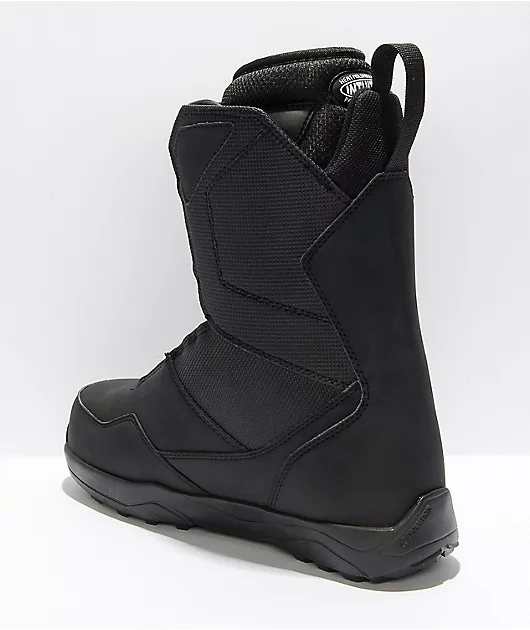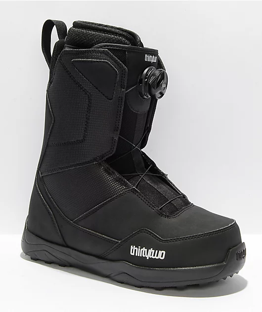 The women’s 2023 Shifty Boa snowboard boots from ThirtyTwo come in an all black colorway. The boots are super flexible, providing both comfort and mobility on and off the board. They feature the BOA reel system on the tongue that provides a super fast, efficient closure, even when wearing mittens. The insoles have a heat-molded dual density foam, a heel overlay for prevented heel slipping, a cozy cuff for warmth, and STI Evolution foam for ultimate cushioning.