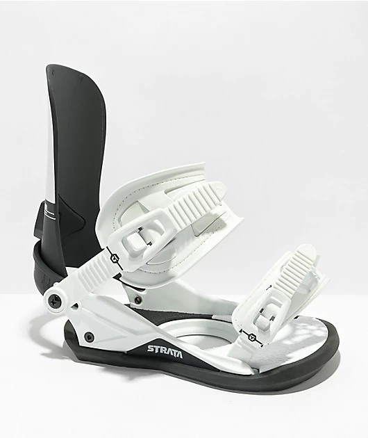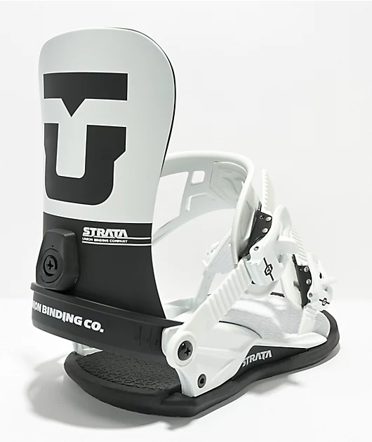 - Men’s 2023 Strata White Snowboard Bindings from Union Binding Co.