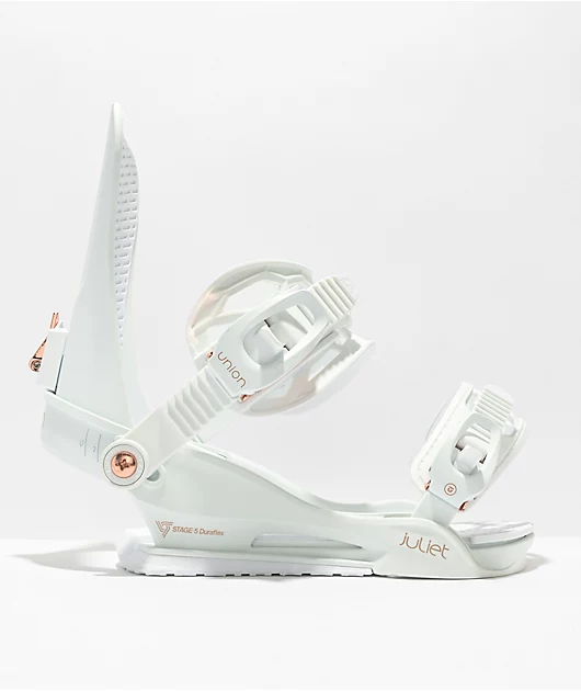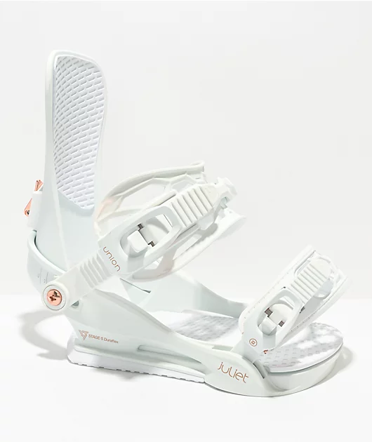 - 2023 Women’s Juliet White Snowboard Bindings from Union Binding Co.